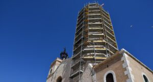 Finalitza la instal·lació de la bastida per restaurar el campanar de...
